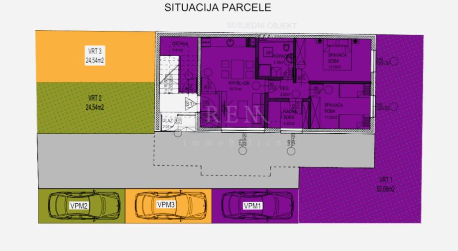 • Vrt 3:24,54 m2 bruto / 2,45 m2 neto (koeficijent 0,10)