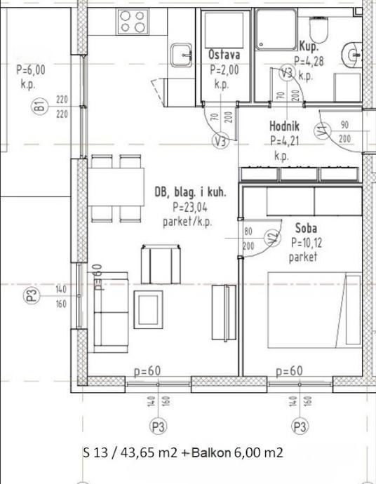 NOVOGRADNJA GRADIĆI (VELIKA GORICA) : 2-SOBAN STAN, 46,65m2 - S13-A (prodaja)