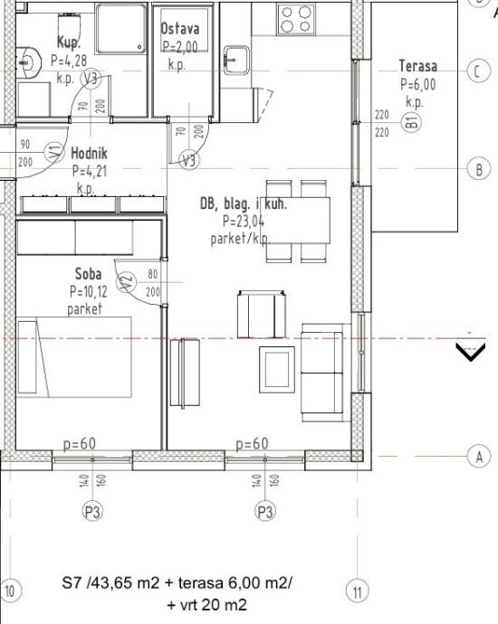 Vrt: 20 m² (postoji mogućnost dokupa dodatne površine vrta)