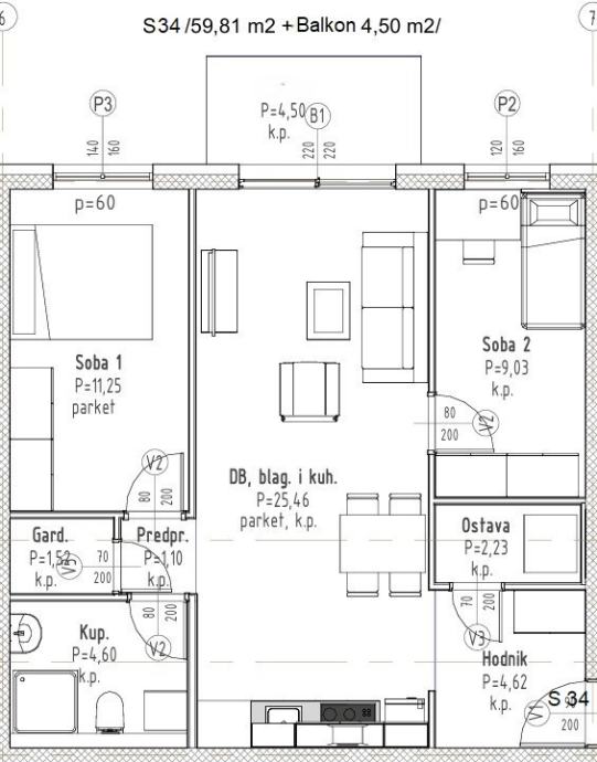 NOVOGRADNJA GRADIĆI (VELIKA GORICA) : 3-SOBAN STAN, 62,06m2 - S34-B (prodaja)