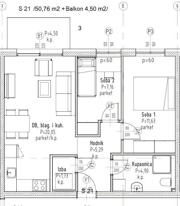 NOVOGRADNJA GRADIĆI (ZAGREB-VELIKA GORICA) : 3-SOBAN, 53,01m2 - S21-B (prodaja)