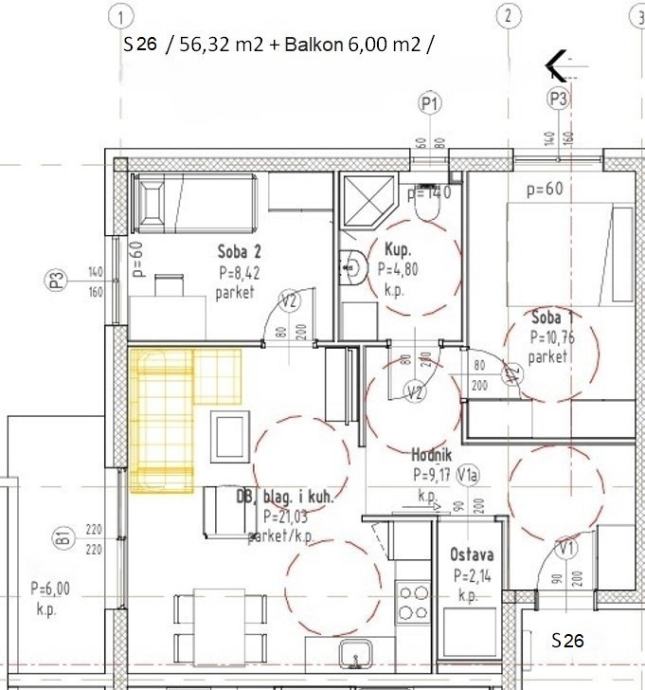 NOVOGRADNJA GRADIĆI (ZAGREB-VELIKA GORICA) : 3-SOBAN, 59,32m2 - S26-A (prodaja)