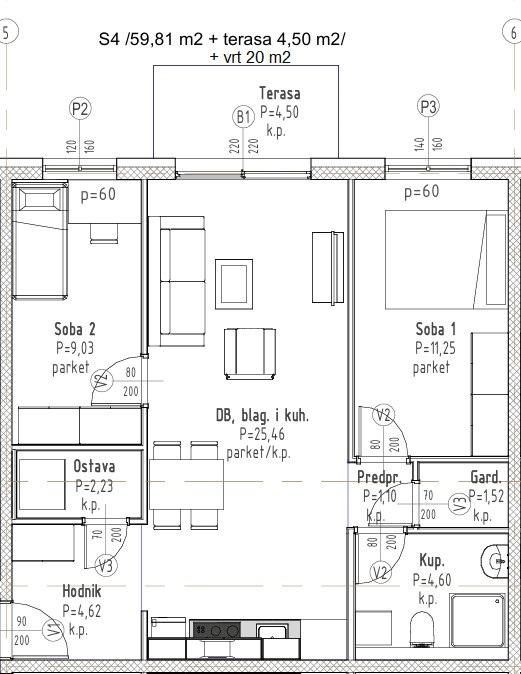 Vrt: 20 m² (postoji mogućnost dokupa dodatne površine vrta)