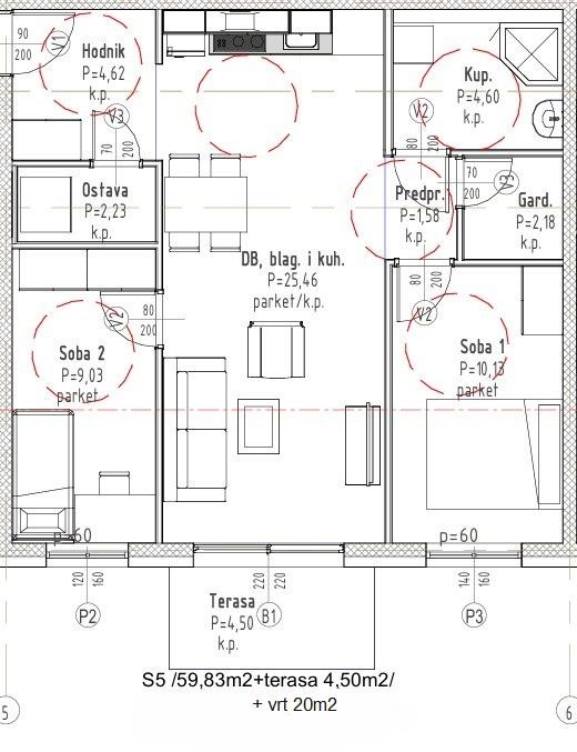 Vrt: 20 m² (postoji mogućnost dokupa dodatne površine vrta)