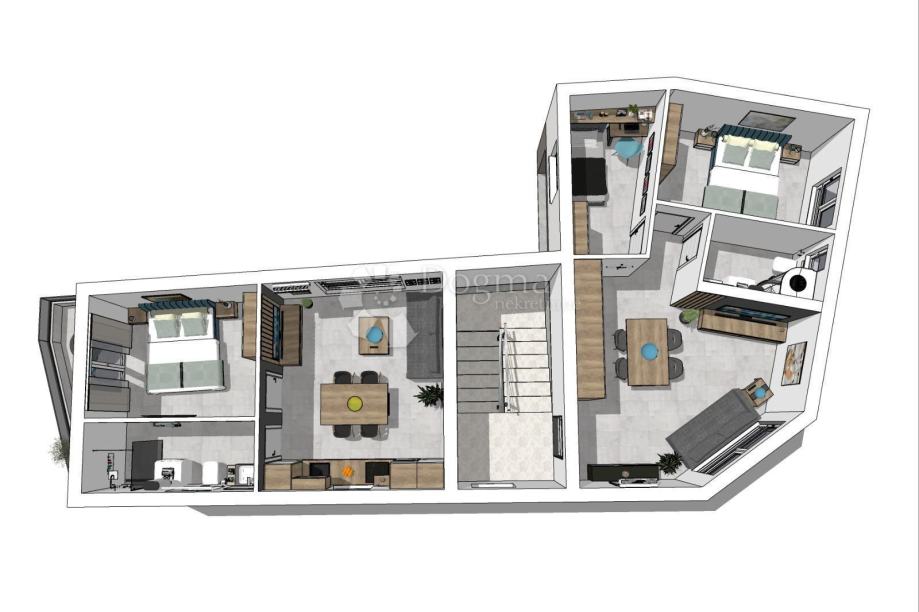 Stan je projektiran u modernom dizajnu i gradi se od kvalitetnih materijala.