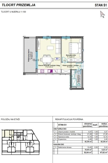 Primamo rezervacije za JEDNOSOBAN STAN površine 47,62m2 dostupan na prizemlju.