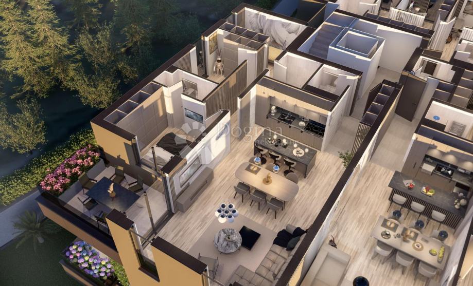 - Terase na krovu: stanovi na zadnjem katu imaju pristup privatnim terasama s keramičkom oblogom