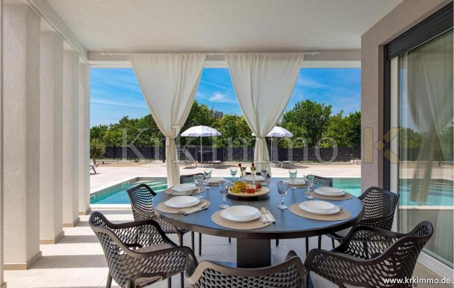 Novogradnja Krk: Moderna samostojeća kuća s bazenom (prodaja)