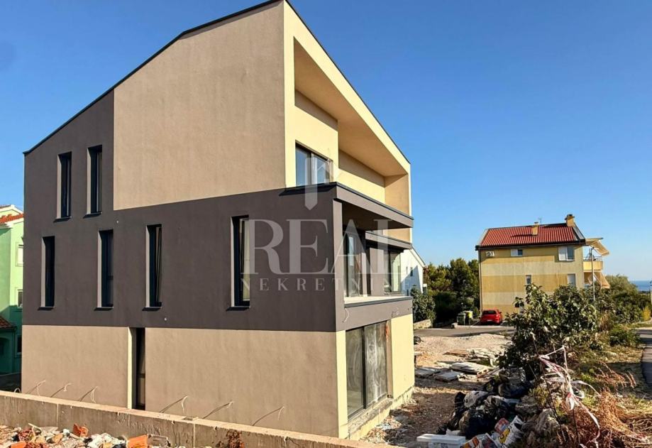 Penthouse u neposrednoj blizini centra Krka i mora površine 100 m2 koji se sastoji od kuhinje sa dnevnim boravkom, dvije garderobe, dvije spavaće sobe dvije kupaonice i dvije terase. Stanu pripadaju dva parkirna mjesta .Nekretnina je opremljena aluminijskom stolarijom, sanitarnom opremom visoke kvalitete te dizalicom topline (podnog grijanja).Udaljenost od mora 400 metara.