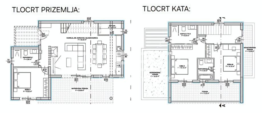 Na drugoj etaži smještene su dvije spavaće sobe, obje s vlastitim kupaonicama i zajedničkom terasom od 18 m².