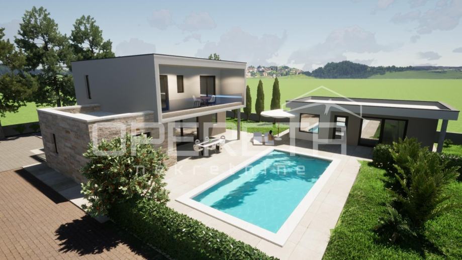 Novogradnja – kuća s bazenom, parcela površine 1.131 m2, Raštane