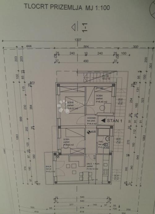 Prodaje se stan u zgradi s dva stana u prizemlju. Stan se sastoji od ulaznog hodnika, tri spavaće sobe i kupaonice.