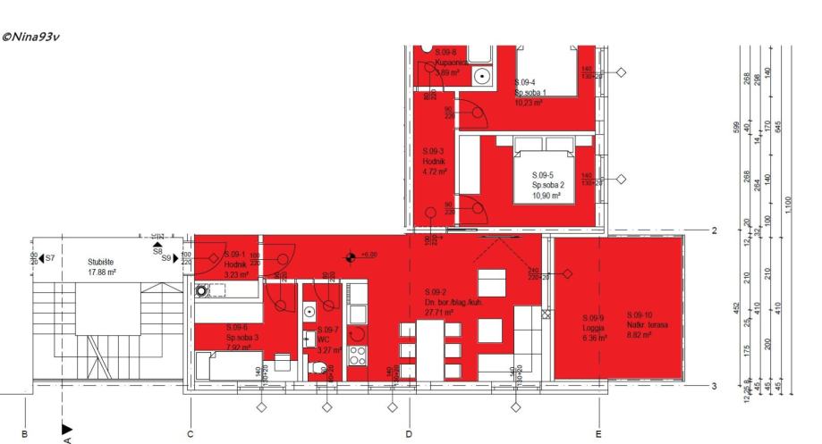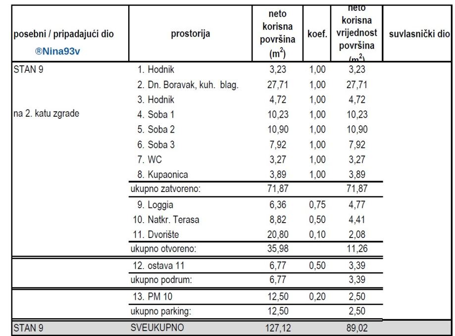 Površine su obračunate po važećim koeficijentima – ukupna neto korisna površina: 89,02 m².