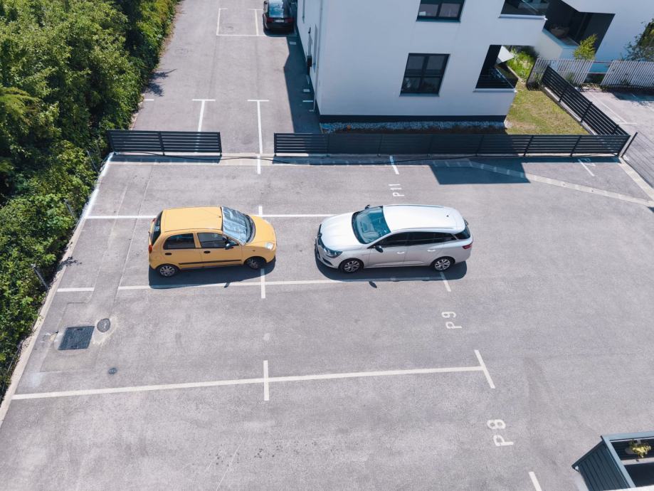 2 vlastita vanjska parkirna mjesta (12,50 m²) i (20,80 m²) – drugo mjesto obračunato pod vrt- po manjem koeficijentu što je i cjenovno manje.