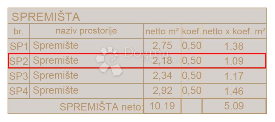 U cijenu svakog stana uključeno je po jedno parkirno mjesto te jedna ostava u središnjem dijelu zgrade u prizemlju.