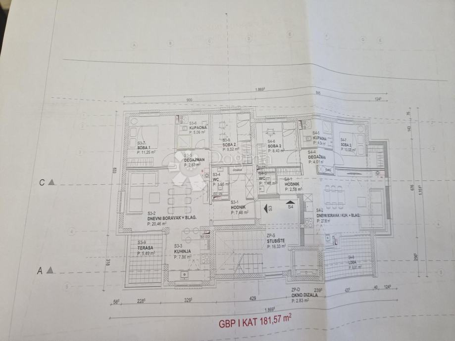 Stan S3 nalazi se na prvom katu a sastoji se od hodnika, dvije spavaće sobe, kupaonica sa WC-om, zasebnog Wc,-a, kuhinje s a dnevnim boravkom iz kojeg je izlaz na prostranu terasu. U stan će biti ugrađene vrlo kvalitetne keramičke pločice i parketi poznatih proizvođača.