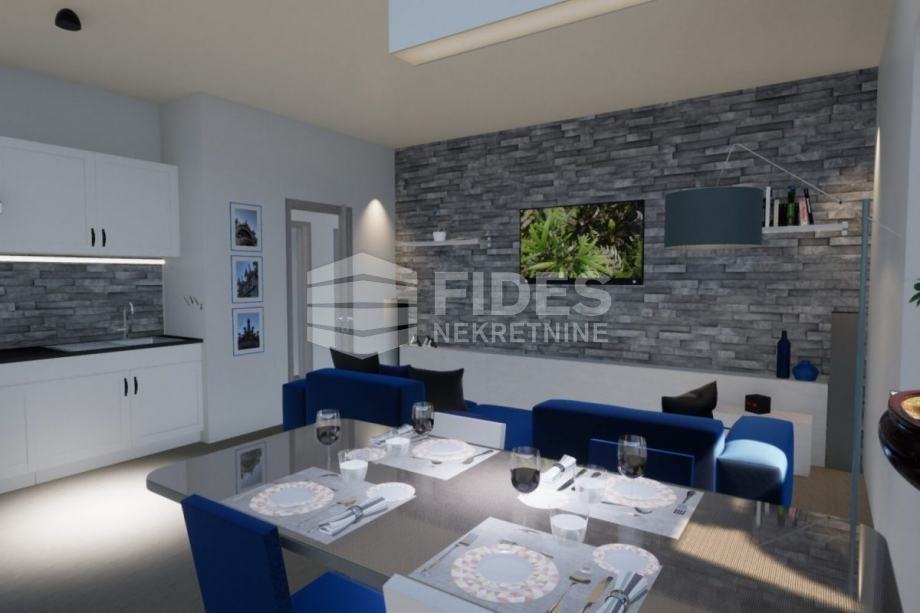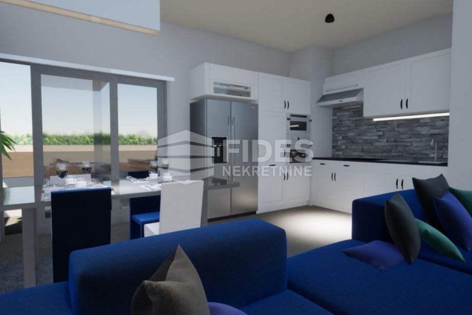 Stan se sastoji od:kuhinje: 6,08 m2, dnevne sobe 12,42 m2, kupaonice: 5,21 m2 m2, terase: 8,95 m2