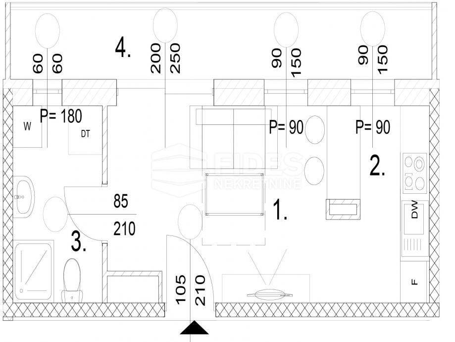 Stambena površina: 25,95 m2. 4.040,00 €/m2. Kupac ne plaća agencijsku proviziju i porez na promet nekretnina.