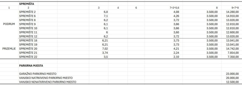 Uz stan je potrebno kupiti jedno parkirno mjesto (garaža ili vanjsko natkriveno) i spremište, prema izboru i dostupnosti.