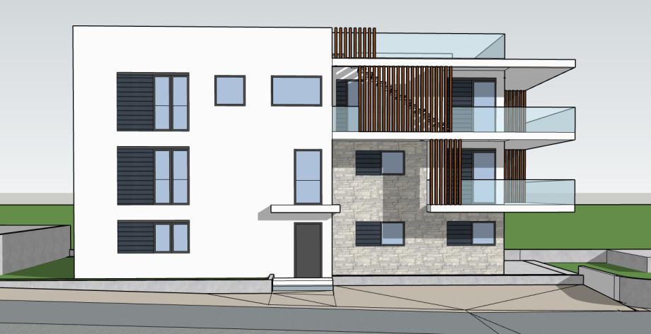 Prodaje se luksuzni stan S3 stambene površine 142 m2 u novoizgrađenoj urbanoj zgradi u centru Vodica s mogućnošću useljenja u ljeto 2024 godine. Zgrada se nalazi u mirnoj ulici udaljenoj svega 300m od samog centra grada i mora. Zgrada je na tri etaže. Na svakoj etaži je jedna stambena jedinica.
