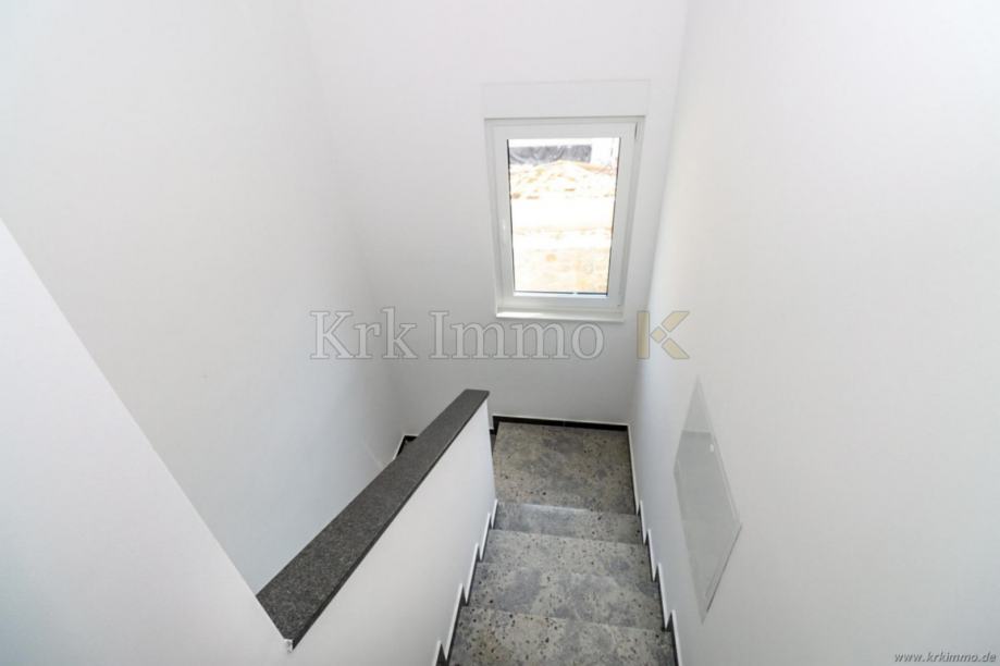 U prizemlju se nalazi hodnik, kupaonica, kuhinja, blagovaonica i dnevni boravak s izlazom na natkrivenu terasu i uređenu okućnicu od 150 m2, koja obuhvaća bazen i sunčalište, idealno za uživanje na otvorenom. Unutarnje stepenice vode na kat, gdje su smještene tri spavaće sobe, svaka s vlastitom kupaonicom. Dvije spavaće sobe imaju izlaz na zajednički balkon s pogledom na more, dok treća soba ima vlastiti balkon s pogledom na okolicu.