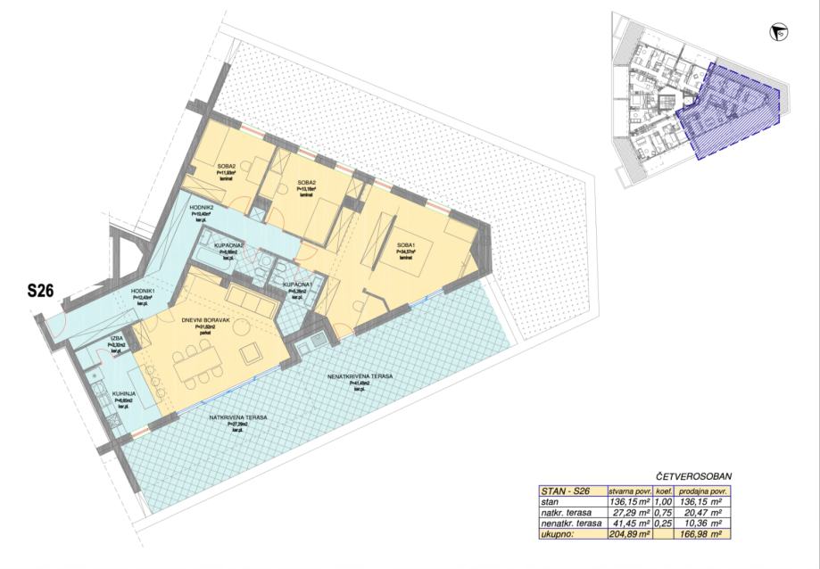 NOVOGRADNJA MIHOVLJAN - ČETVEROSOBAN STAN - PENTHOUSE - S26 (prodaja)
