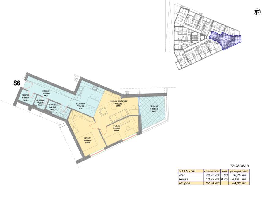 NOVOGRADNJA MIHOVLJAN - TROSOBAN STAN - 1. KAT - S6 (prodaja)