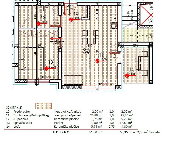 Ukupna površina stana iznosi 50,35 m2, uz pripadajuće dvorište površine 62,30 m2, ukupne netto korisne površine (sa obračunatim koeficijentom) 56,58 m2 što ovu nekretninu čini izuzetno rijetkom i atraktivnom u ponudi novogradnje.
