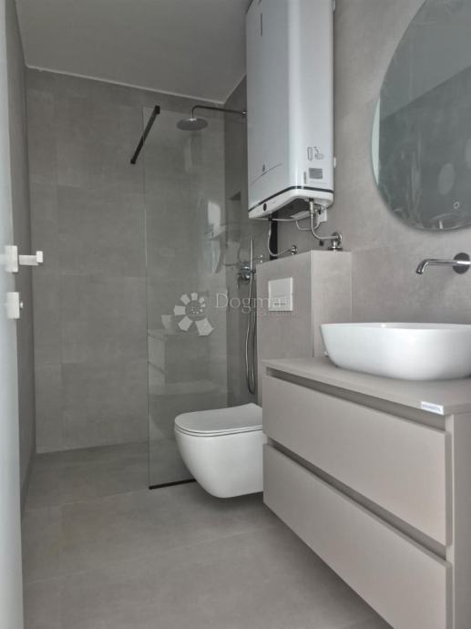 Na prodaju je moderni stan u visoko kvalitetnoj novogradnji u Okrugu Gornjem, udaljen svega manje od 150 metara od mora i plaže.