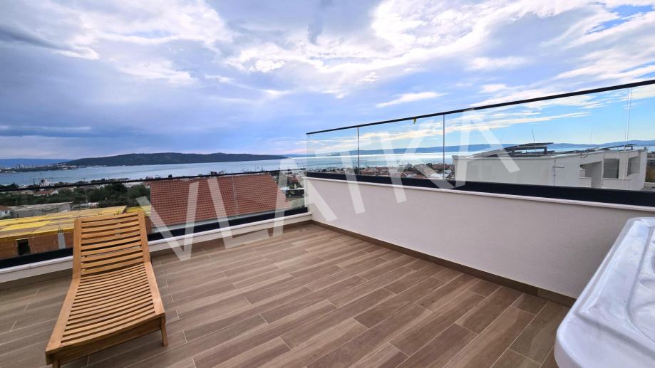 Iznajmljuje se moderno uređena kuća s bazenom i vrtom na mirnoj lokaciji u Kaštel Sućurcu, s pogledom na more.