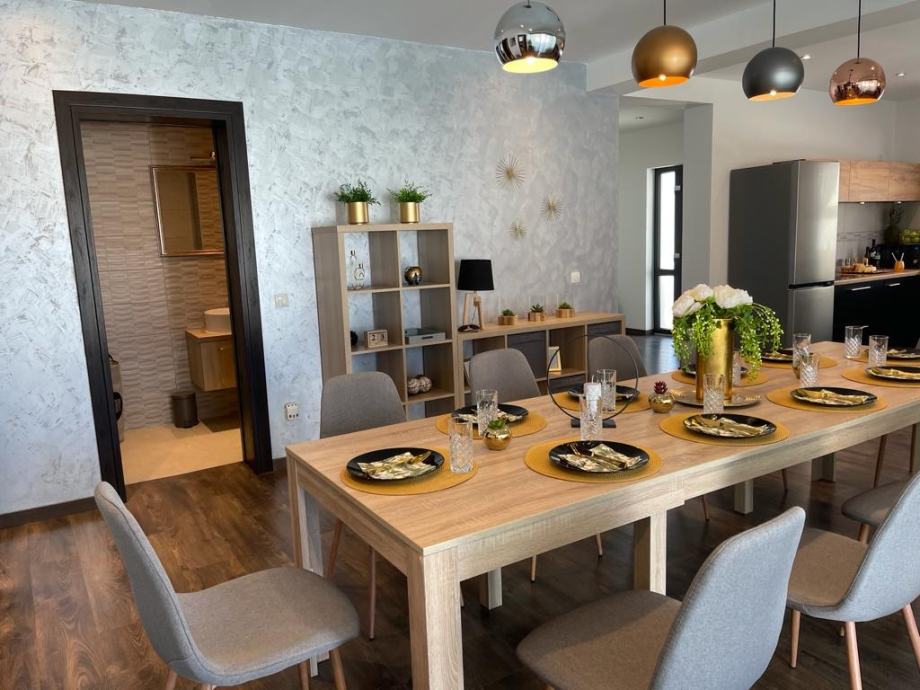 Nekretnina je opremljena modernim i elegantnim namještajem, TV SAT,video nadzor,te se prodaje potpuno namještena.