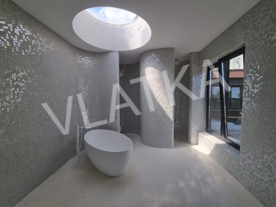 Kuća je izgrađena 2012. godine, a 2023. je potpuno adaptirana: svi sustavi, podno grijanje, elektrika, instalacije, dizalice topline, smart house sistemi s alarmima i kamerama, svim senzorima na kvarove, curenja, dim, požar, CO, potpuno novi podovi na cijeloj kući (terazzo boje bjelokosti), vanjske terase u ispranom kuliru, novi sustavi u bazenu, nova stolarija, vanjska izolacija debljine 12 cm i alufasada, nova keramika, nova hidroizolacija, priprema za postavljanje solarnih panela i spajanje istih na smart house, čelična ojačanja na gornjoj terasi i priprema i projekt za prostoriju dodatnih 32m2 po želji.