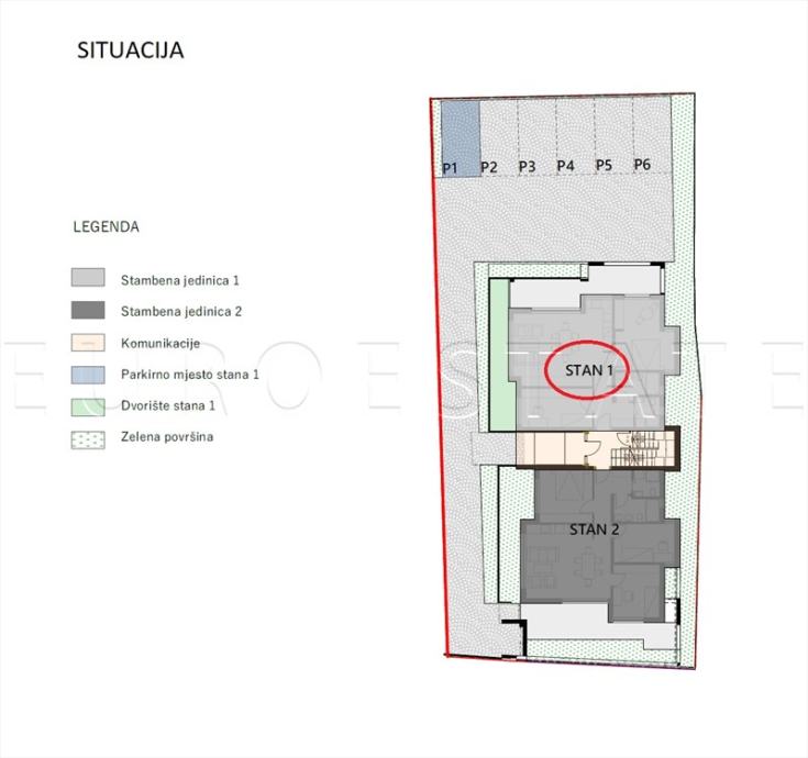ZGRADA IMA UKUPNO 4 STAMBENE JEDINICE PA JE STAN POGODAN ZA KUPCA KOJI TRAŽI MANJU ZGRADU, SA OSIGURANIM VLASTITIM PARKIRNIM MJESTOM.