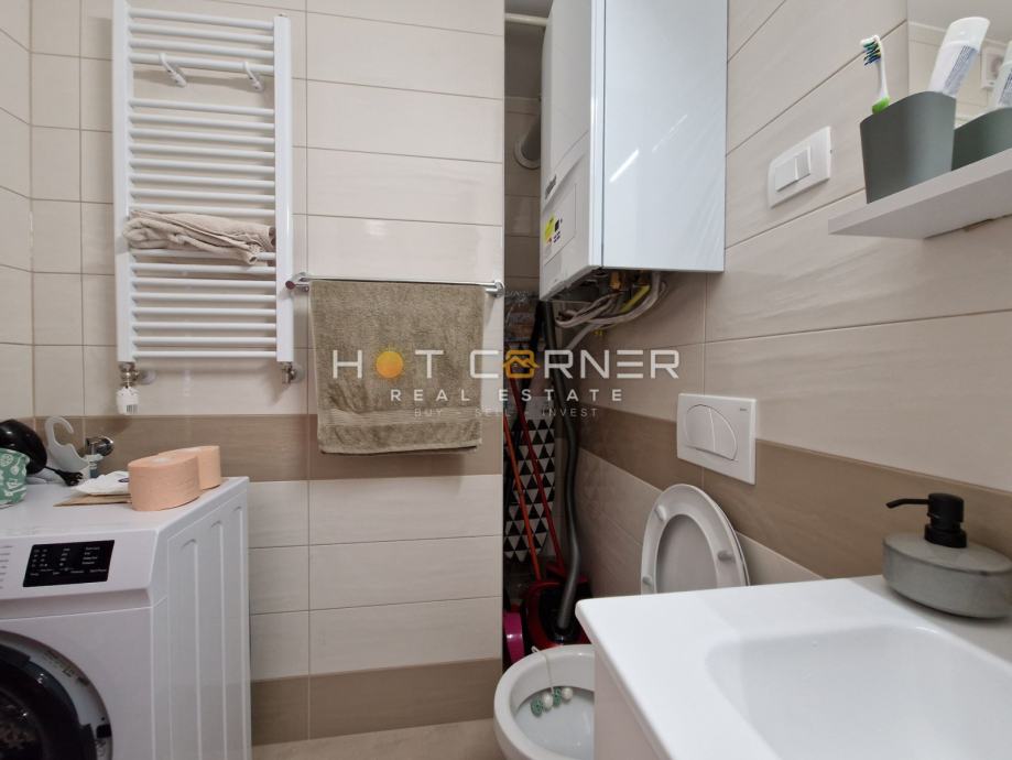 Grijanje je riješeno plinskim etažnim centralnim sustavom (Vaillant) s radijatorima u svim prostorijama, dok je za hlađenje zadužen inverterski klima uređaj Samsung. Stan ima vanjsku PVC stolariju sa roletama, protuprovalna ulazna vrata, modernu unutarnju stolariju. Stanu pripadaju dva parkirna mjesta, a orijentacija jug–istok osigurava obilje prirodne svjetlosti tijekom cijelog dana. Prodaje se namješten. Stan je veoma uredan i čist, odlično održavan i lijepo namješten. Zgrada je nova, sa demit fasadom, nečujnim liftom kroz sve etaže, lijepo uređenim ulazom i velikim parkingom.