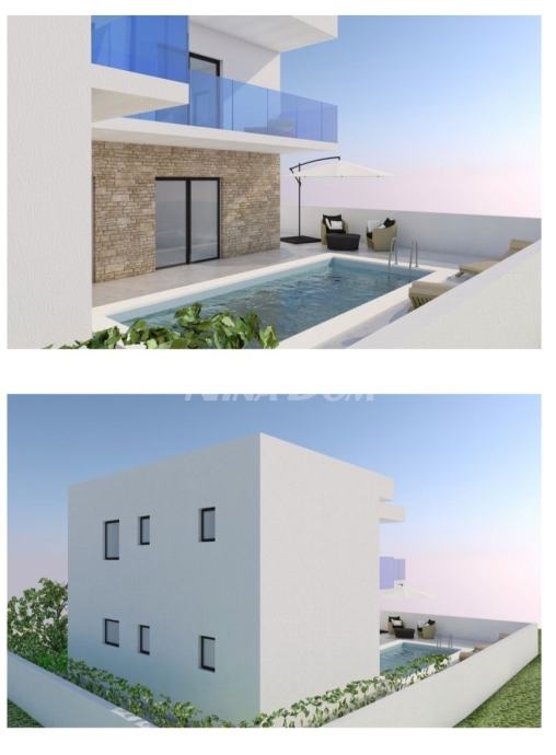 Nekretnina je projektirana s ravnim krovom, uređenom okućnicom s dijelom parkirnim prostorom kao i zelenom površinom.