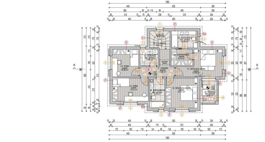 Kat: 103,88 m2 + terasa 5,0 m2 x 0,25 = 105,13 m2