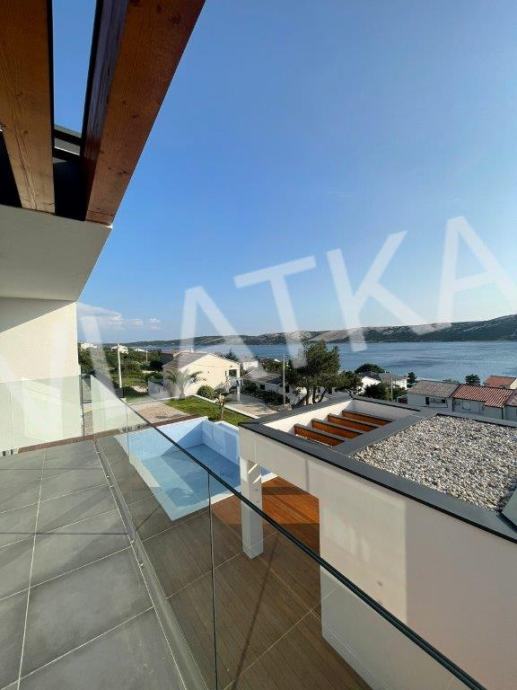 Prodaje se moderna luksuzna vila samo 140 m udaljena od mora, s predivnim pogledom na more, na odličnoj lokaciji u Staroj Novalji.