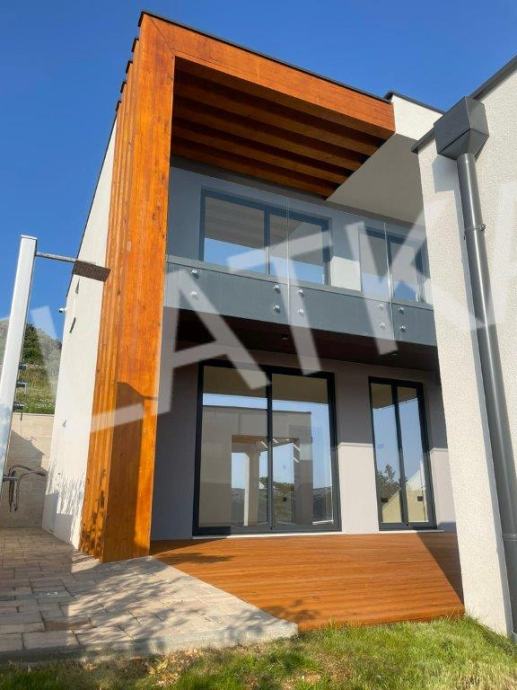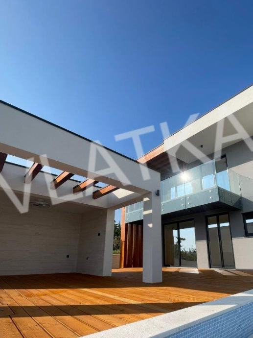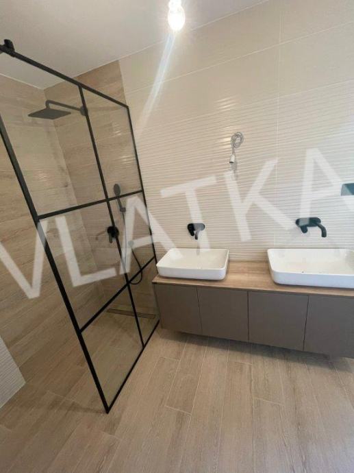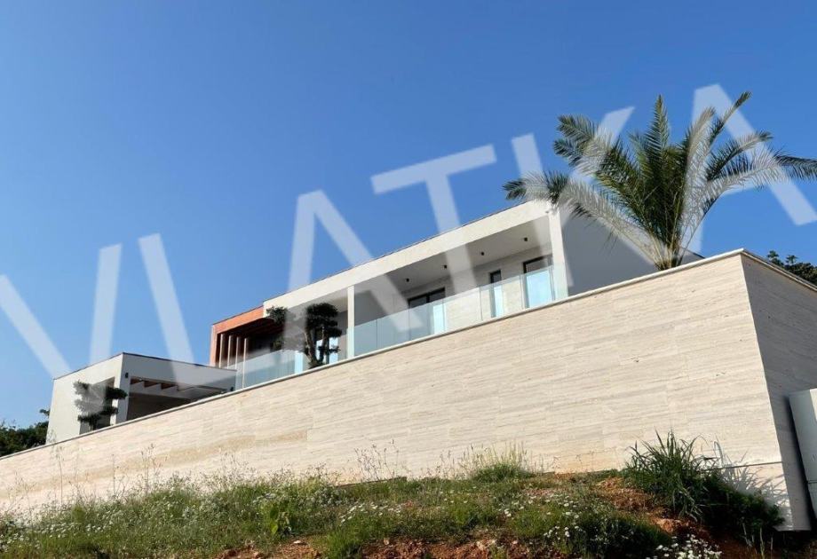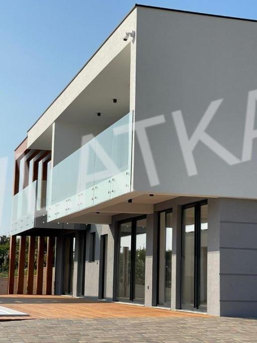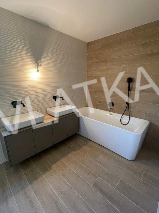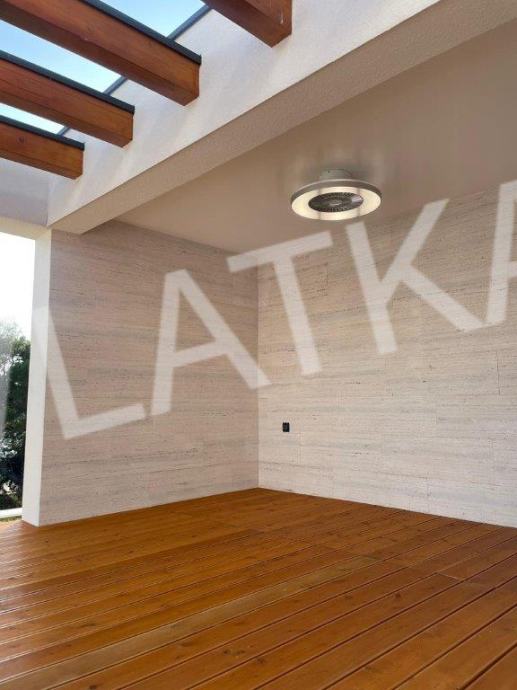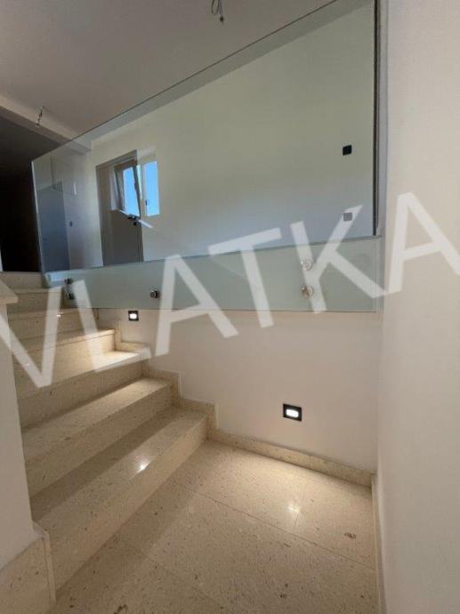 Oprema: vrhunski materijali, alu stolarija, Hansgrohe sanitarije, traventi kamen, termo fasada 10 cm, grijanje/hlađenje klime, električno podno grijanje, video nadzor.