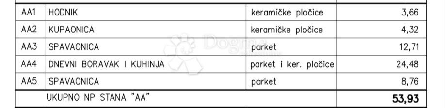 Stan oznake STAN AA je smješten na prizemlju zgrade neto stambene površine 53.93