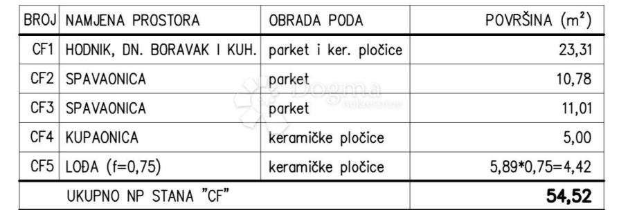 Stan oznake STAN CF je smješten na 2.katu zgrade neto stambene površine 54,52m2.