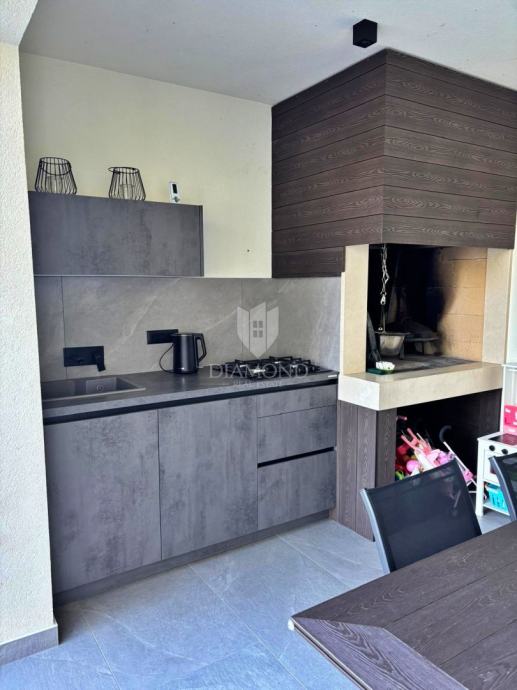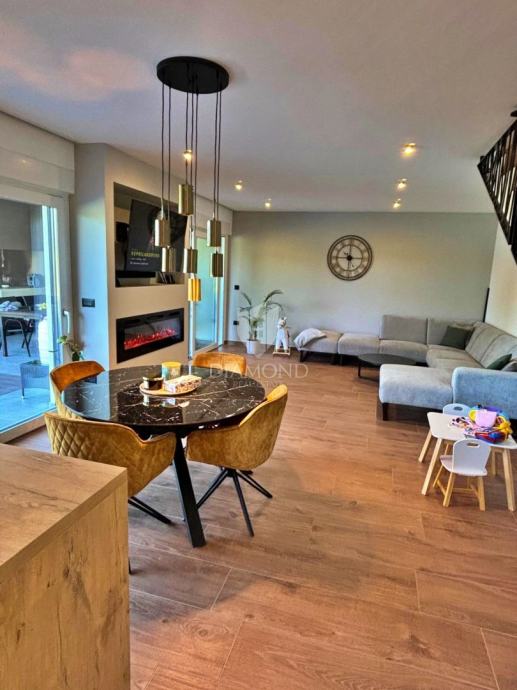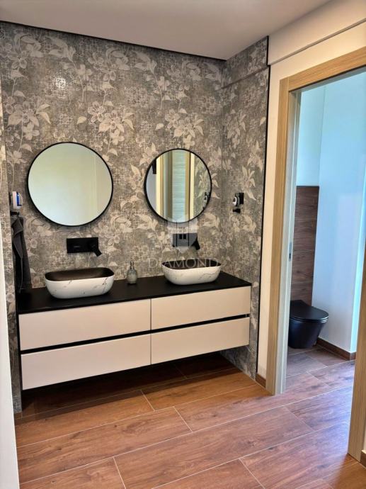 Na prodaju je moderna, potpuno namještena i odmah useljiva kuća smještena svega 5 km od Labina. Ova atraktivna nekretnina ukupne površine 180 m² pruža savršen spoj suvremenog dizajna, funkcionalnosti i energetske učinkovitosti.