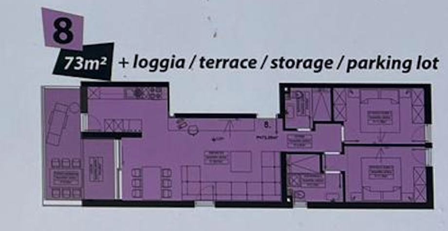 Prodajemo prekrasnu novogradnju u mjestu Mandre na otoku Pagu. Stan s dvije spavaće sobe 69 m2 na samo 50 metara od mora.