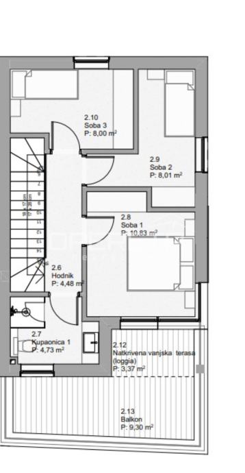 Na izvrsnoj lokaciji otoka Paga u Povljani, prodaje se dvoetažni stan u novogradnji. Roh bau faza je završena te se očekuje izolacija krova i postavljanje stolarije. Stan se nalazi u prizemlju i na prvome katu. Prizemlje se sastoji od dnevnog boravka, kuhinje i blagovaonice sa izlazom na natkrivenu terasu i vrt, wc-a, spremišta i vešeraju. Stepeništem se dolazi do druge etaže koja ima 3 spavaće sobe, kupaonicu, hodnik te izlaz na natkrivenu terasu i blakon. Ukupna površina stana s obračunatim koeficijentima iznosi 107,42 m2. Stanu pripadaju i 2 vanjska parkirna mjesta. Urbana vila je udaljena 650 m od mora te svaki stan ima pogled na more s jedne strane i prekrasan pogled na Velebit s druge strane. Za stanove je predviđena bogata i moderna oprema. Za ovaj stan dostupno je i spremište kao i mogućnost da se iskopa dodatni mali bazen. Više informacija na upit.
