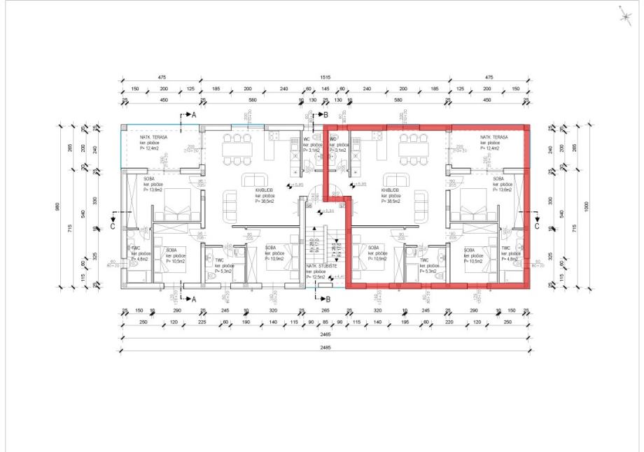 Prodajemo penthouse u novogradnji ukupne korisne površine 113,35m2.