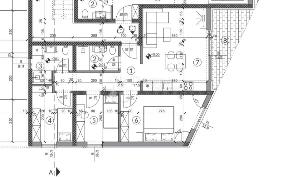 - Dvosobni stanovi površine cca. 60 - 65 m²