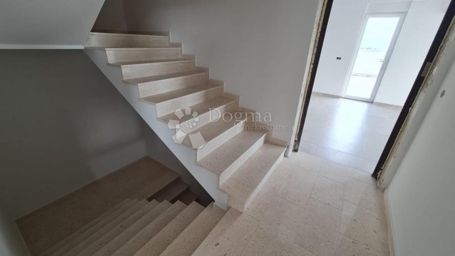 Sastoji se od dvije spavaće sobe (11,43m2 i 11,24m2), dvije opremljene kupaonice (6,39m2 i 3,62m2), hodnika (2,98m2) te raskošnog otvorenog prostora kuhinje, blagavaonice i dnevnog boravka (34,52m2) s koje imamo direktan izlaz na prostranu natrkivenu terasu (40,31m2) i vrt ukupne površine čak 70m2. Uz navedno stanu pripada i ostava u podrumu zgrade (4m2) i dva parkirna mjesta.