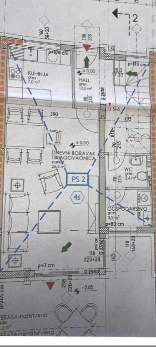 • Stambeni objekat se sastoji od tri kuće u nizu.