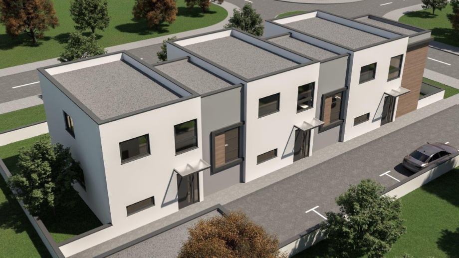 Prodaje se izuzetna kuća u nizu s 3 stambene jedinice, novogradnja, četverosoban, na odličnoj lokaciji u Prelogu (Jug).