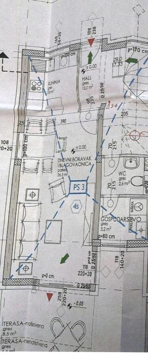 • Stambeni objekat se sastoji od tri kuće u nizu.