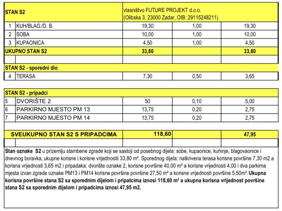 Stanu pripadaju dva vanjska parkirna mjesta (2 x 13,75 m2).